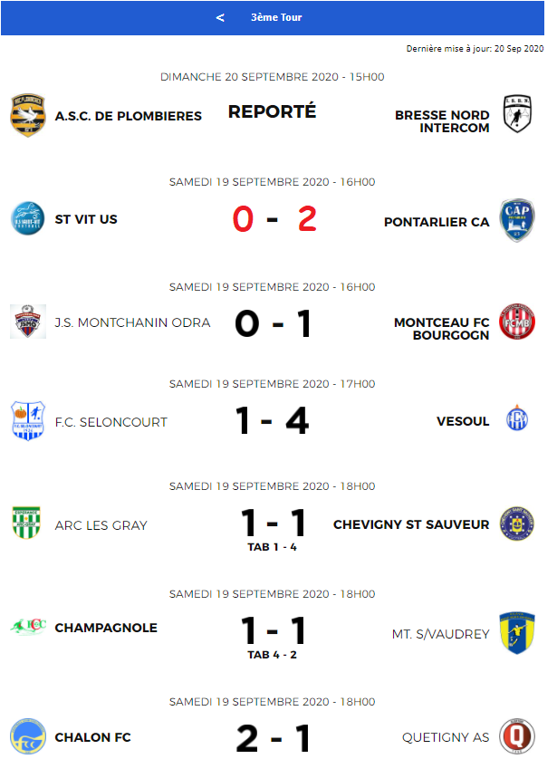 Coupe de France : Les résultats complets du 3ème tour, sept clubs de Saône-et-Loire au rendez-vous du 4ème tour