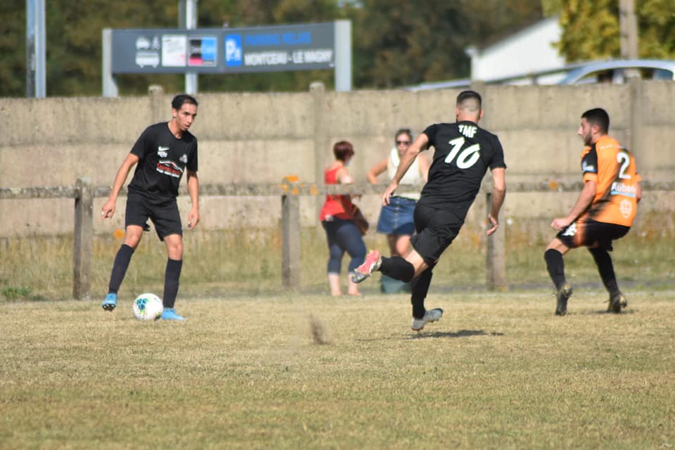 Ce dimanche au Magny, le Team Montceau Foot lançait sa saison au Magny. En face, un adversaire de qualité, à savoir La Chapelle de Guinchay B, habitué aux joutes du championnat de Départemental 1. La première mi-temps sera globalement équilibrée, avec une grosse occasion pour le numéro 10 visiteur. Mais sa frappe qui prenait le chemin de la lucarne fut stoppée net de la tête par Ambroise Dessalut, auteur d’une prestation défensive XXL. Le terrain asséché poussa La Chapelle à privilégier le jeu long. Tandis que les locaux posaient principalement le jeu au sol. Avec à la clé plusieurs occasions franches. Notamment sur ce raid de Rachid Soufi, très actif sur tout le front de l’attaque, conclut par un face à face avec le portier Chapellois. Un jeune gardien de grande qualité qui gardera sa cage inviolée, grâce à plusieurs belles parades.