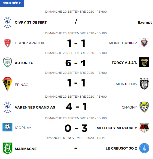 Départemental 2 (Poules C et D) : Retour sur les matchs de la 2ème journée, Autun et Demigny tout en haut
