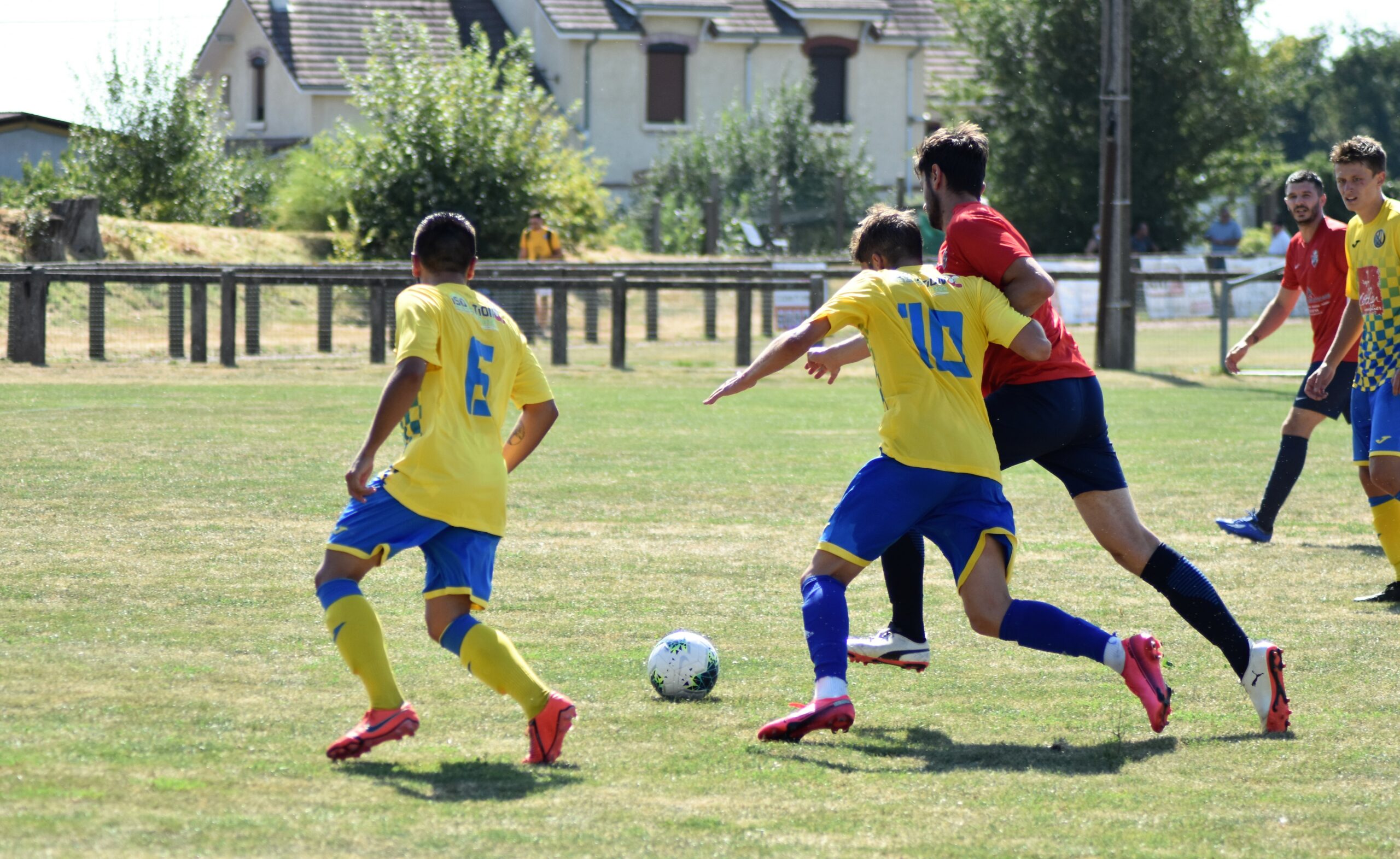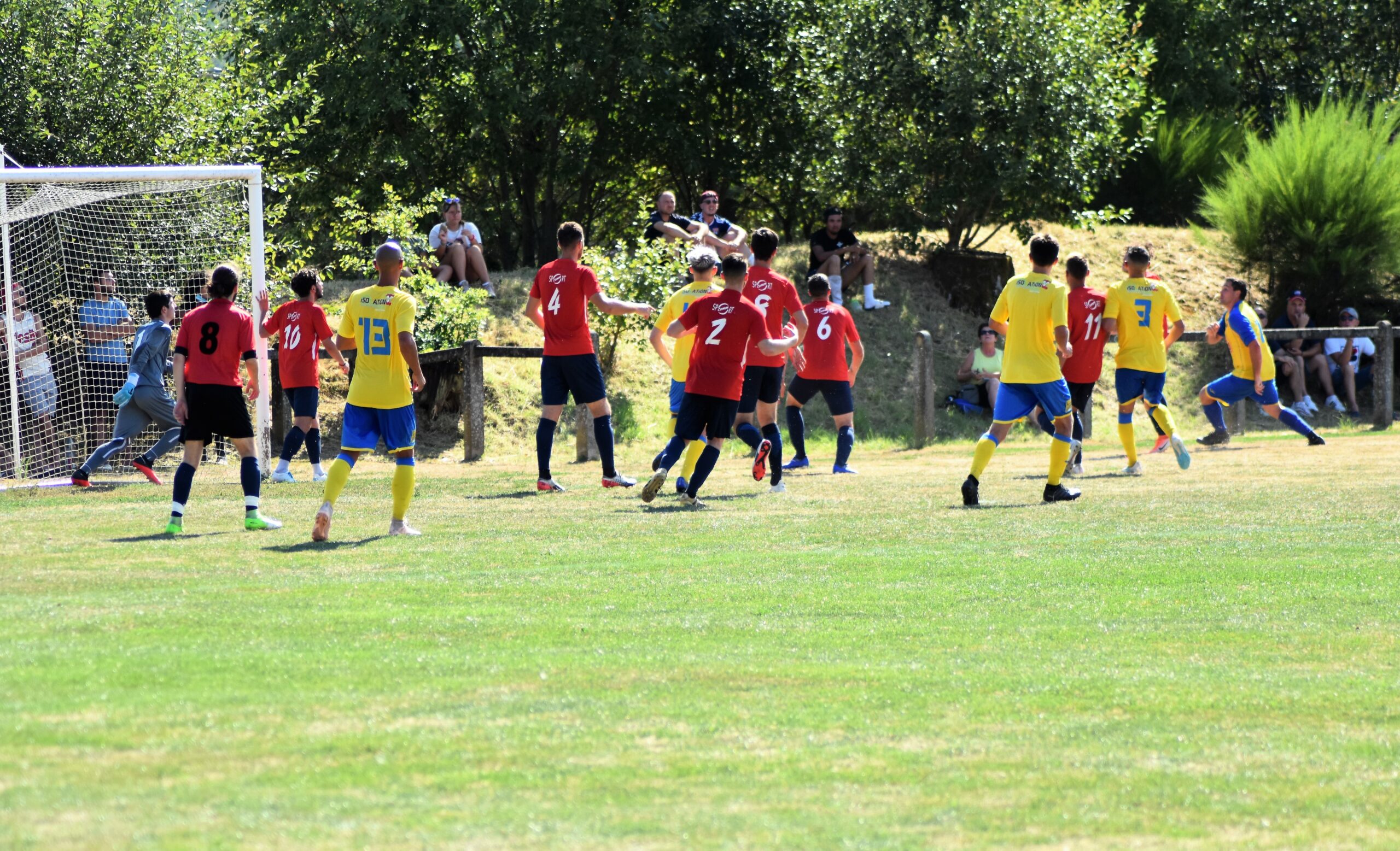 Ce samedi après-midi, alors que beaucoup se prélassaient autour de plans d’eau, les joueurs du groupe A (élargi) du CS Sanvignes accueillaient leurs homologues de Montchanin. Deux clubs qui se retrouveront cette saison en championnat Régional 2. Sous une chaleur étouffante, les locaux se sont largement imposés sur le score de 7 à 0. Alors certes, Montchanin n’était clairement pas au complet, toutefois difficile de ne pas s’enthousiasmer devant la puissance de feu dégagée par le groupe de Lionel Martin. Photos signées Jérémy Lapalus, alias « Pishoot ».