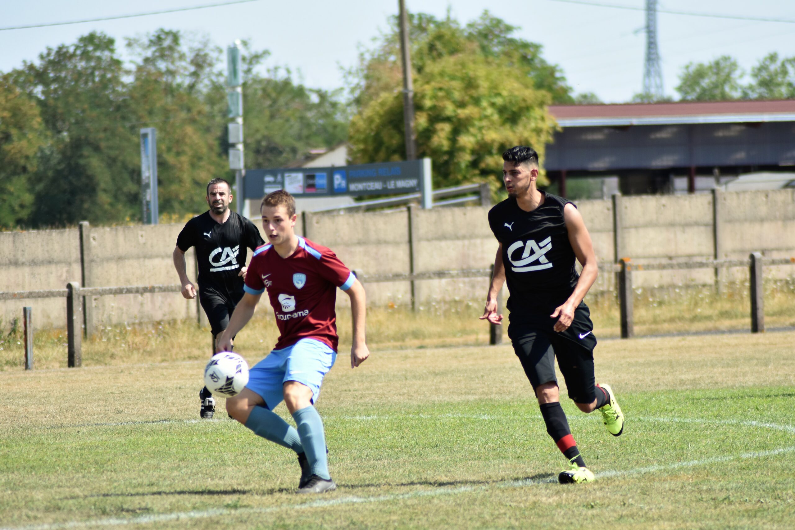 L’objectif du jour était limpide pour les deux équipes, remettre en route la machine. Car ce « TMF – Génelard Perrecy », bien qu’amical, marquait le retour au terrain depuis début mars. En effet, les deux clubs disputaient là leur premier match depuis début mars (pour les raisons que l’on connaît tous). Sur le rectangle vert, ou jaune selon où on se trouve, ce sont les Montcelliens qui se montrent d’entrée plus entreprenants. Avec comme récompense, un premier but superbe signé Brice Roiatti d’un lob imparable (1-0, 18′), suite à un double une-deux réussi avec Ameza Tidjet.