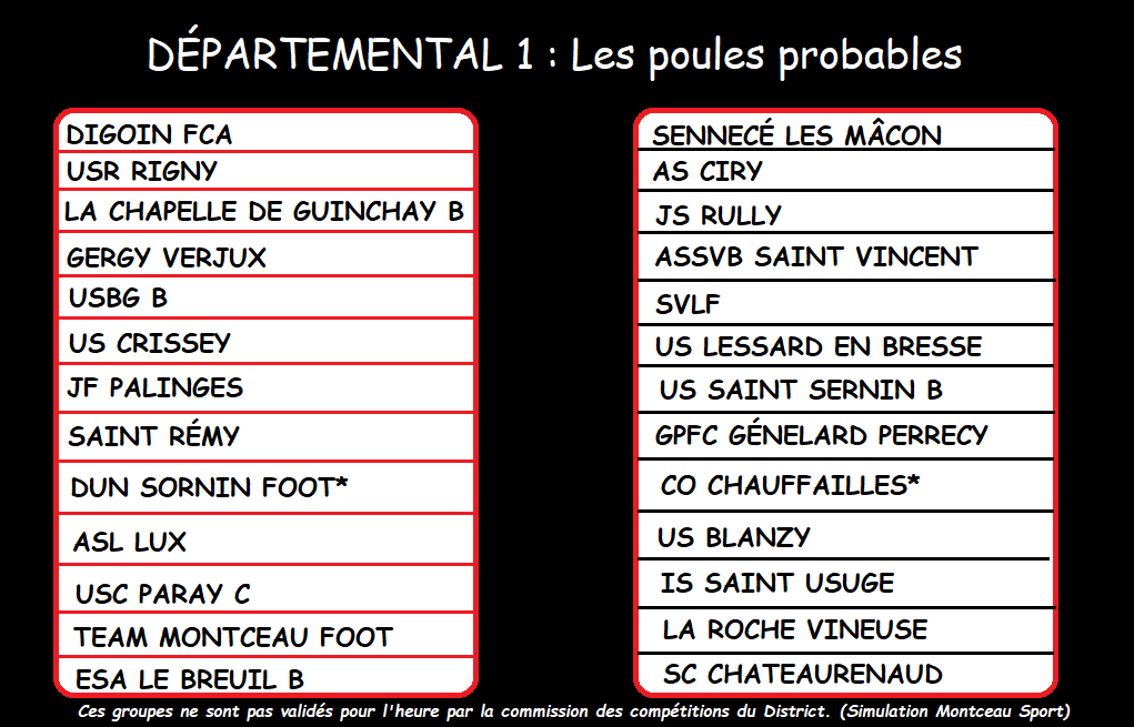 District de Saône et Loire (Football) : À quoi pourraient ressembler les deux groupes de Départemental 1