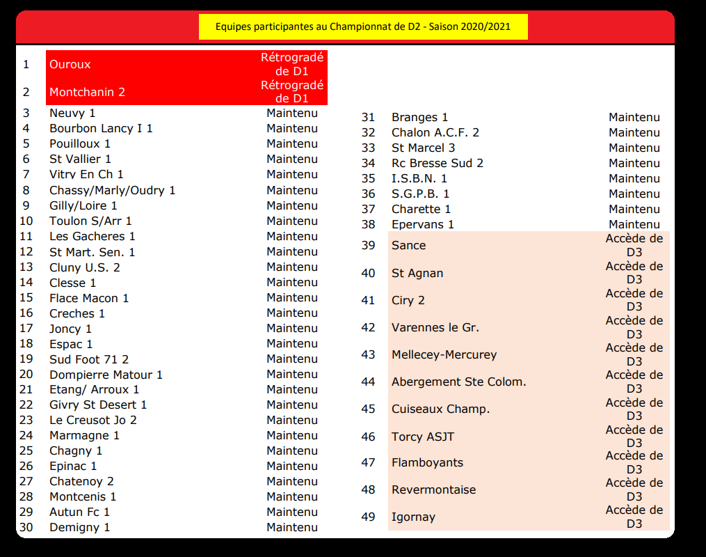 Montceau Sport – La liste des 49 équipes éligibles au championnat Départemental 2 cette saison.