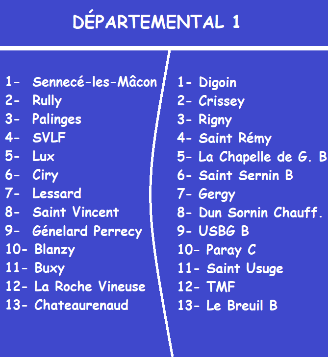 L’attente fut longue pour tous les passionnés. Depuis ce matin, nombreux sont ceux qui réactualisent la page du site du District Saône et Loire de Football à outrance. Dans l’espoir d’y découvrir leurs adversaires de demain. Ce mardi, comme convenu, la composition des poules de Départemental 1, D2 et D3 a été dévoilée. L’occasion pour les clubs de se projeter, même si il faudra attendre trois semaines avant de connaître le calendrier par journée.