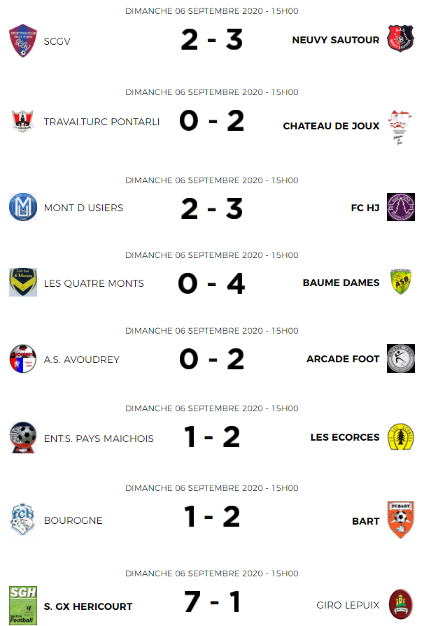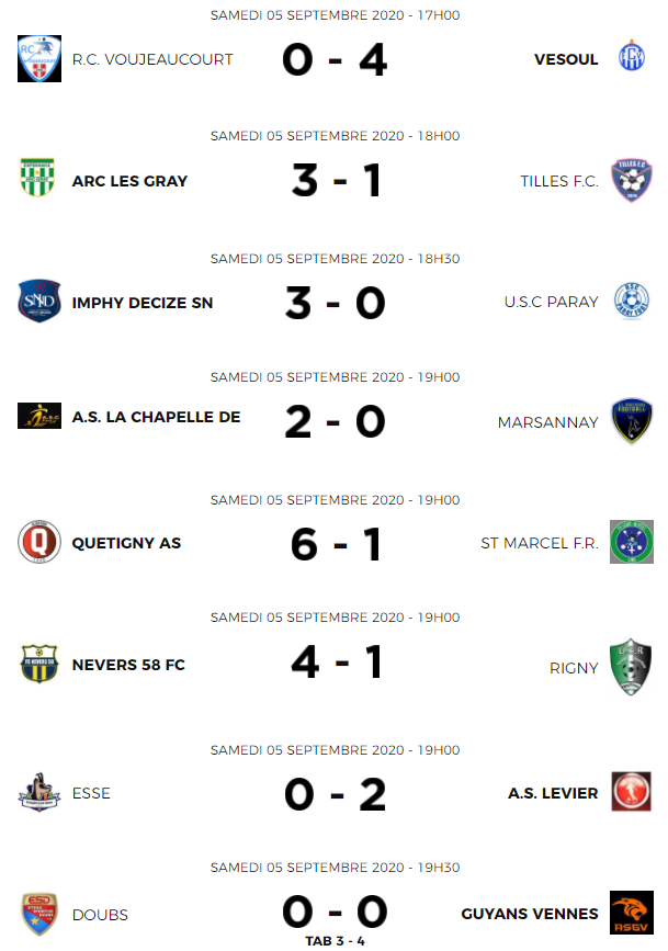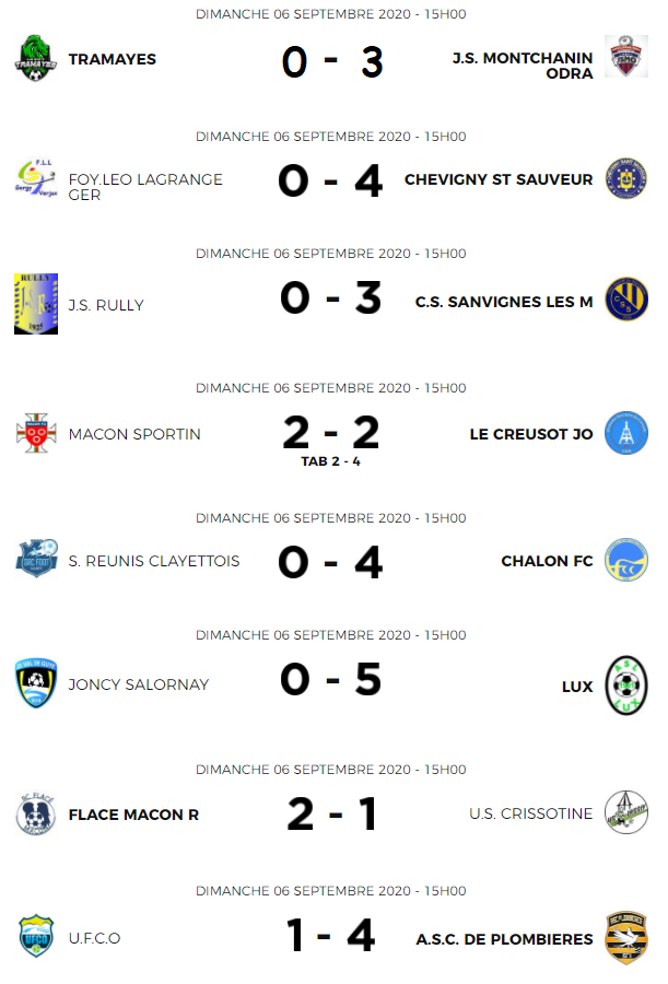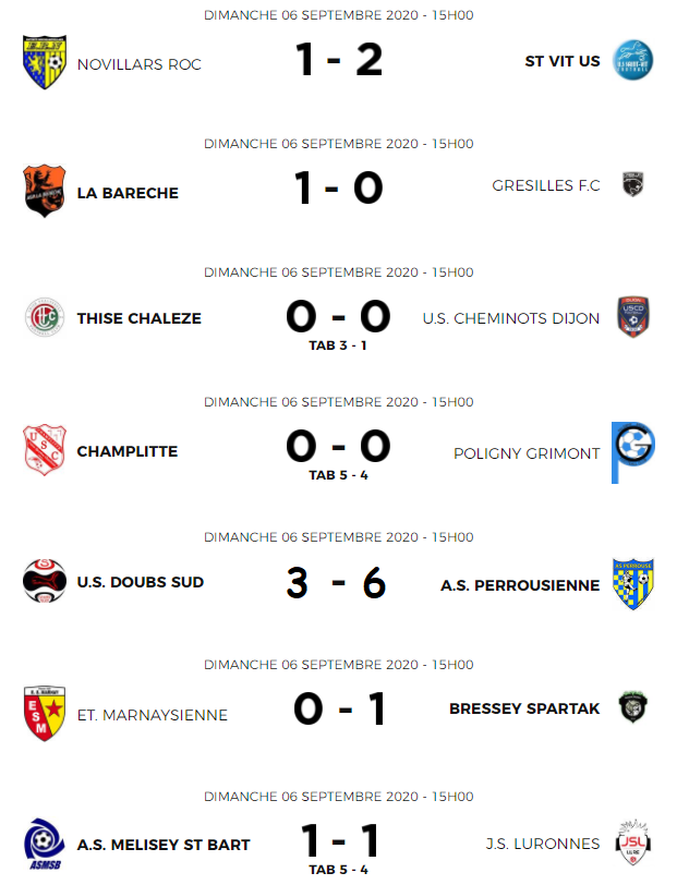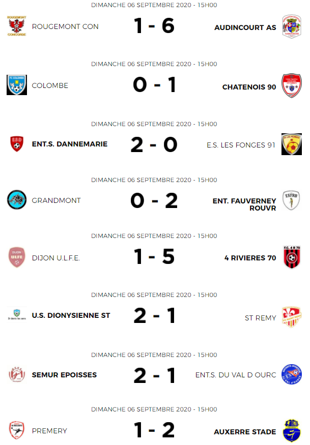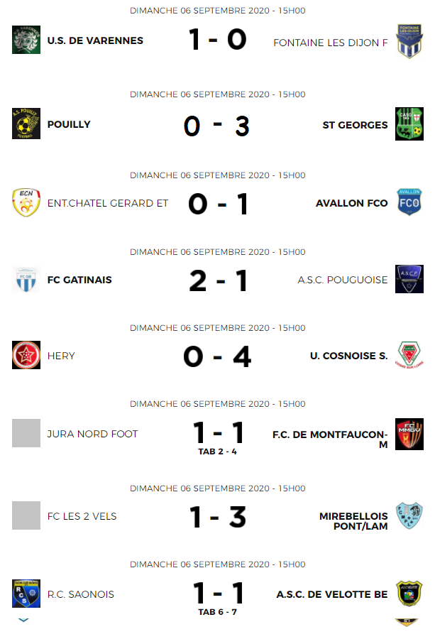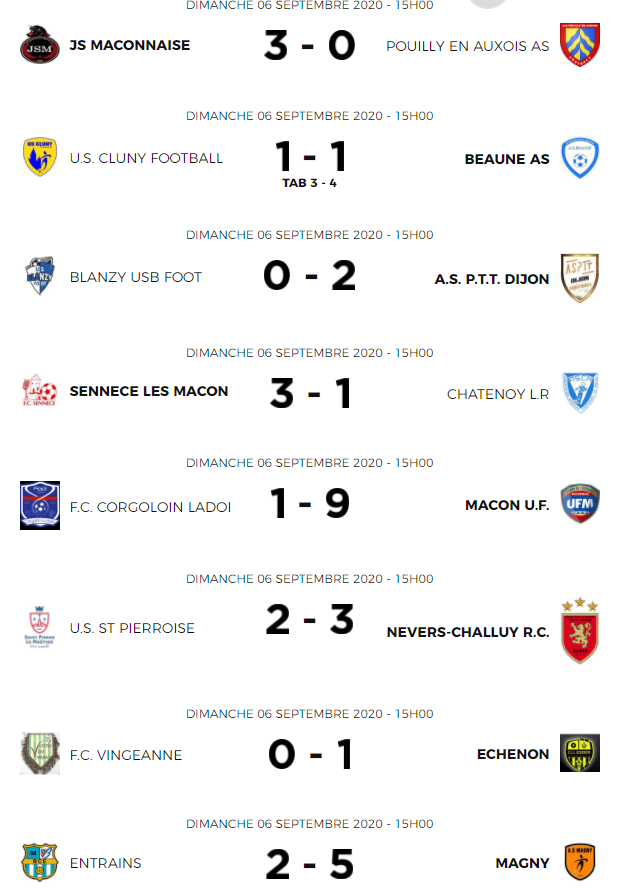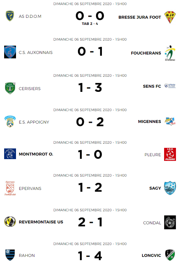 Ce samedi et dimanche, les clubs toujours en lice en coupe de France disputaient le second tour de l’épreuve. Si les clubs de National 3 ne feront leur entrée dans la compétition qu’au troisième tour, le niveau était tout de même relevé. Avec plusieurs affiches types mêlant « petits » et « gros ». Au final, la hiérarchie fut globalement respectée. Même si certains ont créer la surprise, à l’image de la belle qualification de Sennecé-les-Mâcon contre Chatenoy. Découvrez tous les résultats des clubs de la Ligue Bourgogne Franche-Comté ci-dessous.